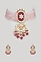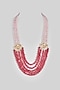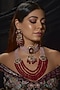 House of Vastraa presents a gold finish choker and long necklace studded with kundan polki and red beads, set in mixed metal. It is paired with a matching pair of earrings. This necklace set is a true testament to the artistry of India's rich cultural heritage, ideal for festive occasions or wedding celebrations.