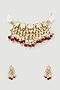 Gold Finish Kundan Polki & Red Beaded Choker Necklace Set