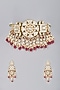Gold Finish Kundan Polki & Red Drop Choker Necklace Set
