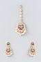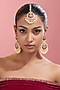 Gold Finish Kundan Polki & Red Stone Dangler Earrings With Maangtikka