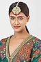 House of Vastraa presents a gold finish maang tikka studded with kundan polki and red stones, set in mixed metal.