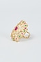 House of Vastraa presents a gold finish ring studded with kundan polki, including red and green stones, set in mixed metal.