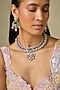 House of Vastraa presents a gold finish necklace studded with kundan polki and ruby synthetic stones, set in brass. It is paired with a matching pair of earrings. It is a true testament to the artistry of India's rich cultural heritage, ideal for festive occasions and wedding celebrations.