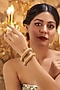 House of Vastraa presents a pair of gold finish temple bangles studded with kundan polki, set in mixed metal. These bangles are a true testament to the artistry of India's rich cultural heritage, ideal for festive occasions and wedding celebrations.