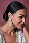 House of Vastraa presents a pair of gold finish temple dangler earrings studded with kundan polki and multi-colored synthetic stones, set in mixed metal.