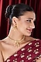House of Vastraa presents a gold finish temple necklace studded with kundan polki, set in mixed metal. It is paired with a matching pair of earrings.