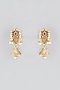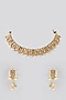House of Vastraa presents a gold finish temple necklace studded with kundan polki, green and red synthetic stones, set in mixed metal. It is paired with a matching pair of earrings. It is a true masterpiece that celebrates the beauty and grace of Indian culture, making it a cherished addition to your jewellery collection.