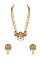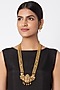 House of Vastraa presents a gold finish long temple necklace with metal balls, set in mixed metal. It is paired with a matching pair of earrings.
