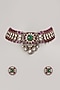 Featuring a gold finish choker necklace studded with multi-colored stones, set in mixed metal. It is paired with a matching pair of earrings. Accessorise it with elegant ethnic ensembles for a statement look, ideal for festive soirees or wedding celebrations.