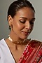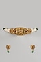 House of Vastraa presents a gold finish temple choker necklace studded with multi-colored stones, pearls and kundan polki, set in mixed metal. It is paired with a matching pair of earrings. This necklace set is a true testament to the artistry of India's rich cultural heritage, ideal for festive occasions or wedding celebrations.