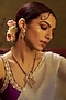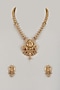 House of Vastraa presents a gold finish temple long necklace studded with multi-colored stones and kundan polki, set in mixed metal. It is paired with a matching pair of earrings. This necklace set is a true testament to the artistry of India's rich cultural heritage, ideal for festive occasions or wedding celebrations.