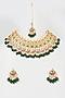 Gold Finish Pachi Kundan Polki & Green Stone Necklace Set