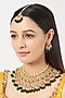 House of Vastraa presents a gold finish necklace studded with pachi kundan polki and green stones, set in mixed metal. It is paired with a matching pair of earrings and a maangtikka.