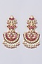 Featuring a pair of gold finish earrings studded with red synthetic stones, kundan polki, pearls, and faux diamonds, set in mixed metal.