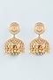 Gold Finish Pearl & Red Stone Temple Jhumka Earrings