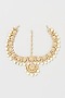 House of Vastraa presents a gold finish mathapatti studded with kundan polki and pearls, set in mixed metal.