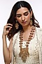House of Vastraa presents a gold finish long necklace studded with kundan polki and pink beads, set in mixed metal.