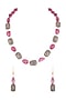 House of Vastraa presents a gold finish mala necklace studded with pink and black stones, set in mixed metal. It is paired with a matching pair of earrings.