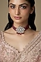 House of Vastraa presents a gold finish choker necklace studded with ruby synthetic stones, set in mixed metal. It is a true testament to the artistry of India's rich cultural heritage, ideal for festive occasions and wedding celebrations.