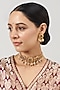 House of Vastraa presents a gold finish temple choker necklace studded with ruby synthetic stones and beads. It is paired with a matching pair of earrings.