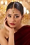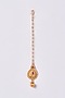 House of Vastraa presents a gold finish temple maang tikka studded with kundan polki and synthetic ruby stones, set in mixed metal. This maang tikka is a true testament to the artistry of India's rich cultural heritage, ideal for festive occasions and wedding celebrations.