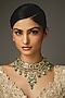 House of Vastraa presents a gold finish necklace studded with turquoise stones, set in mixed metal. It is a true testament to the artistry of India's rich cultural heritage, ideal for festive occasions and wedding celebrations.