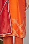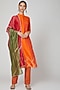 Featuring an orange kurta in cotton blend fabric with mandarin collar. It is paired with matching straight pants and a red and green dupatta.