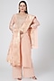 Featuring a peach kurta in cotton base with embroidery. It is paired with matching palazzo pants and a dupatta.