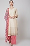 Featuring a white kurta in cotton silk base with print. It is paired with contrasting pink pants and a dupatta.