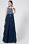 Featuring a cobalt blue anarkali in georgette base with zardosi embroidery and slit. It is paired with matching palazzo pants.