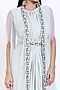 Featuring a mint green cape in lycra and net base. It is paired with a matching gown having embroidery and a belt.