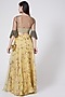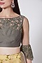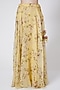 Featuring a mustard skirt in chanderi base with zardosi embroidery. It is paired with a contrasting peplum top in organza base and a net dupatta.