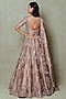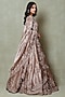 Featuring a brown and silver lehenga in tissue base with cutdana, pearls and sequins embroidery. It is paired with an embroidered blouse and a dupatta. Accentuate it with polki jewellery and block heels for weddings or a sangeet ceremony.