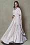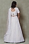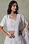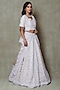 Featuring a champagne lehenga in tissue base with pearls and sequins embroidery. It is paired with an embroidered blouse and a dupatta. Accentuate it with polki jewellery and block heels for weddings or a sangeet ceremony.