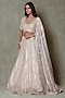 Featuring a champagne lehenga in tissue base with cutdana, pearls and sequins embroidery. It is paired with an embroidered blouse and a dupatta. Accentuate it with polki jewellery and block heels for weddings or a sangeet ceremony.