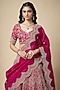 Featuring a fuschia pink lehenga in silk base with dori zari, zardosi and sequins embroidery. It is paired with a blouse and dupatta. Accentuate it with polki jewellery and block heels for weddings or a bridal look.