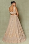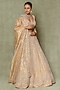 Featuring a gold lehenga in tissue base with cutdana, pearl and sequins embroidery. It is paired with an embroidered blouse and a dupatta. Accentuate the designer lehenga with swarovski or pearl jewellery, embellished heels and a potli bag for a bridal look, Perfect wear for your wedding, sangeet or engagement ceremony.