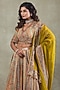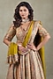 Elevate your wardrobe with this gorgeous mehendi green lehenga crafted from crepe. Adorned with intricate metallic sequins embellishments, this ensemble is a perfect choice for bridesmaids or sangeet ceremonies. It comes complete with a matching blouse and a beautifully draped dupatta. For the ultimate look, pair it with statement jewellery and trendy block heels.