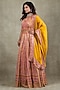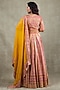 Featuring a mustard lehenga in crepe base with metallic sequins embellishments. It is paired with a blouse and a dupatta. Accentuate it with kundan polki jewellery, a floral bun and embellished block heels for a bridesmaid look, perfect for sangeet nights or engagement ceremony.