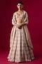 Featuring a peach lehenga in tissue base with cutdana, pearls and sequins embroidery. It is paired with an embroidered blouse and a dupatta. Pair this opulent lehenga with a choker set and a sleek bun for a royal bridal look. Ideal for your wedding day, engagement, or reception celebration.