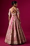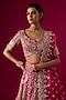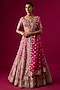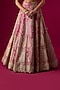Featuring a pink lehenga in organza base with dabka, zardosi, zari and french knots and appliqu? embroidery. It is paired with an embroidered blouse and a dupatta. Style this opulent lehenga with a choker set and a sleek bun for a royal bridal look. Ideal for your wedding day, engagement, or reception celebration.