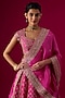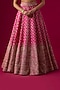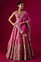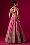 Featuring a pink lehenga in silk base with dori, zardosi and sequin embroidery. It is paired with an embroidered blouse and an organza dupatta. Style this opulent lehenga with a choker set and a sleek bun for a royal bridal look. Ideal for your wedding day, engagement, or reception celebration.