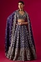 Featuring a purple lehenga in organza base with an oxidised zardosi, French knots and pearl embroidery. It is paired with an embroidered blouse and a dupatta. Style this opulent lehenga with a choker set and a sleek bun for a royal bridal look. Ideal for your wedding day, engagement, or reception celebration.
