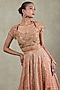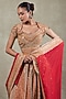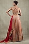 Featuring a red lehenga in crepe base with metallic sequins embellishments. It is paired with a blouse and a dupatta. Accentuate it with kundan polki jewellery, a floral bun and embellished block heels for a bridesmaid look, perfect for sangeet nights or engagement ceremony.