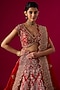 Featuring a red lehenga in silk base with zardosi and french knot embroidery. It is paired with an embroidered blouse and a net dupatta. Style this opulent lehenga with a choker set and a sleek bun for a royal bridal look. Ideal for your wedding day, engagement, or reception celebration.