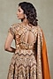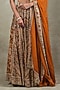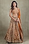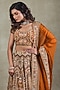 Featuring a rust lehenga in crepe base with digital print. It is paired with a blouse and a dupatta. Accentuate it with kundan polki jewellery, a floral bun and embellished block heels for a bridesmaid look, perfect for sangeet nights or engagement ceremony.