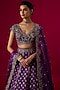 Featuring a violet lehenga in organza base with an oxidised zardosi, French knots and pearl embroidery. It is paired with an embroidered blouse and a dupatta. Style this opulent lehenga with a choker set and a sleek bun for a royal bridal look. Ideal for your wedding day, engagement, or reception celebration.