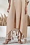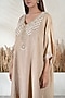 Featuring a beige kaftan in crushed tissue, cotton and crepe base with embroidery. It is paired with a slip and pants. Accentuate it with statement earrings and block heels for festive occasions or sangeet ceremony.