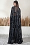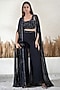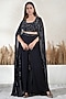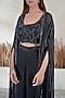 Featuring a black cape in georgette base with embroidery. It is paired with a blouse and sharara pants. Accentuate it with statement earrings and block heels for festive occasions or sangeet ceremony.