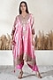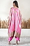 Featuring a metallic pink kaftan in tissue, cotton and crepe base with embroidery. It is paired with a slip and pants. Accentuate it with statement earrings and block heels for festive occasions, pooja or sangeet ceremony.